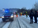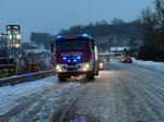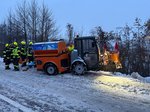 Beim Eintreffen war die Lage für den Einsatzleiter rasch klar: Der Citymaster des örtlichen Bauhofs. war während der Schneeräumarbeiten von der Fahrbahn abgekommen, über den Fahrbahnrand gerutscht und im Hang hängen geblieben.