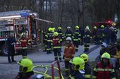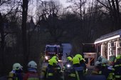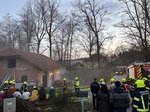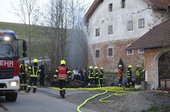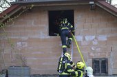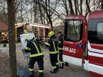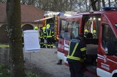 Übungsablauf: Nach der Alarmierung übernahm das Kommandofahrzeug unmittelbar die Einsatzleitung und der Einsatzleiter koordinierte alle weiteren Maßnahmen vor Ort. Zunächst wurde das Wasser der beiden Tankwagen genutzt. Bei einem theoretisch höheren Wasserbedarf wäre die nächstgelegene Wasserstelle zur Wasserentnahme herangezogen worden. Die Atemschutztrupps gingen nacheinander vor und retteten alle vermissten Personen auf verschiedenen Wegen. Alle Fahrzeuge der Wehr waren im Einsatz. Nach rund zweieinhalb Stunden konnte die Übung erfolgreich beendet werden.