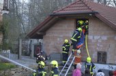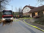 Übungsannahme: In der Garage eines Bauernhofes, die nur über zwei Garagentore zugänglich war, brach ein Feuer aus. Da ein direkter Zugang nicht möglich war, mussten wir über das Dach in das Gebäude eindringen, um die noch in der Garage befindlichen vermissten Personen zu retten.