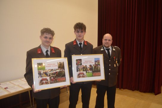 Erfreulich war auch die Übernahme von zwei Mitgliedern aus der Jugendfeuerwehr in den Aktivstand, welche vom Jugendbetreuer mit einem Präsent gewürdigt wurde.